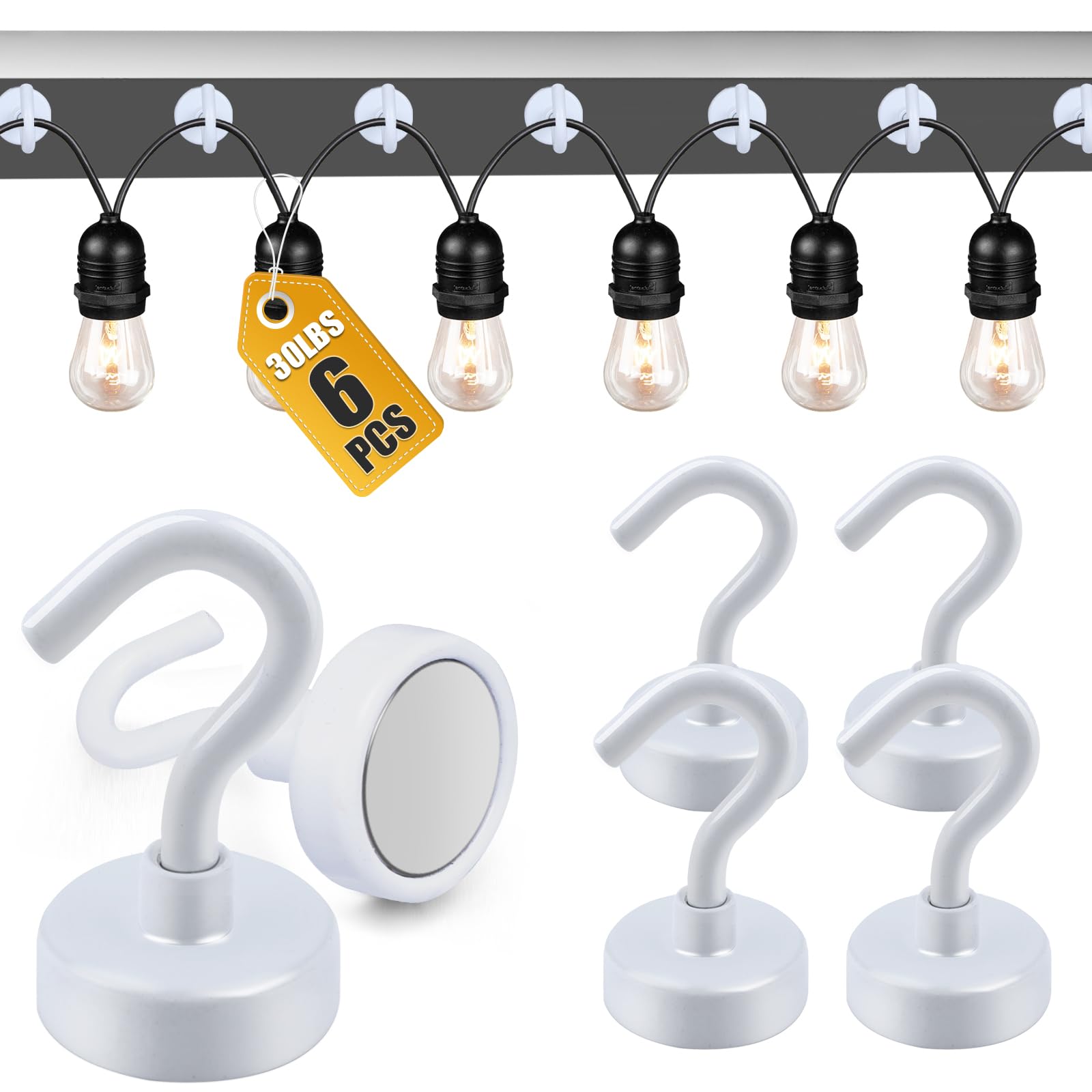 DIYMAG Outdoor Hooks for Hanging String Lights, White Magnetic Hooks Strong 30lbs+ Hanging Party Light Wall Cable 2025 Cruise Cabin Ship Essentials Heavy Duty Strong Magnets for Outside Grill 6PCS